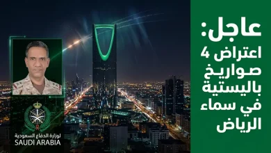 بيان عاجل من وزارة الدفاع السعودية بشأن اعتراض وتدمير 4 صواريخ باليستية فوق الرياض
