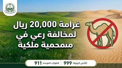 تغريم مواطن 20 ألف ريال لمخالفته أنظمة الرعي في مواقع محظورة بمحمية الملك عبدالعزيز الملكية