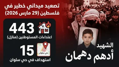 شهدت الأراضي الفلسطينية المحتلة اليوم الأحد 29 مارس 2026 تصعيداً ميدانياً خطيراً، حيث أعلنت المصادر الطبية عن ارتقاء طفل في…
