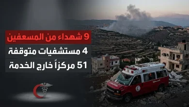 حصيلة دامية تطال القطاع الصحي في جنوب لبنان مع استشهاد 9 مسعفين خلال 24 ساعة