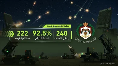 الجيش الأردني يعلن اعتراض 222 هدفاً جوياً بنسبة نجاح بلغت 92.5% منذ بدء المواجهات الإقليمية