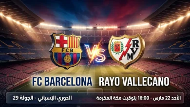 القنوات الناقلة لمباراة برشلونة ورايو فاييكانو الأحد 22-3-2026 في الدوري الإسباني