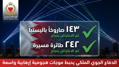 قوة دفاع البحرين تعلن إحباط هجوم إرهابي واسع النطاق وتدمير 143 صاروخاً باليستياً و242 طائرة مسيرة انتحارية