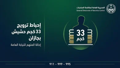 مكافحة المخدرات تطيح بمواطن في جازان بحوزته 33 كيلوجراماً من الحشيش وتحيله للنيابة العامة